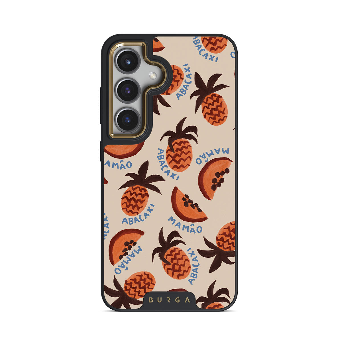 En este diseño: piña, papaya, patrón tropical