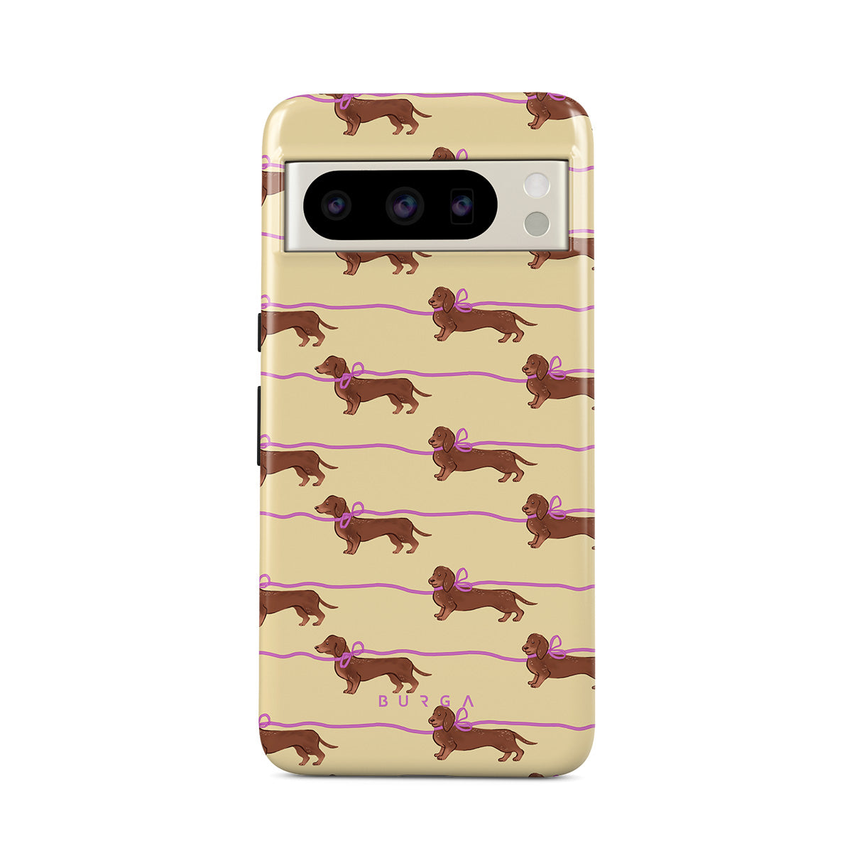 En este diseño: perros salchicha con lazos rosas, perros adorables