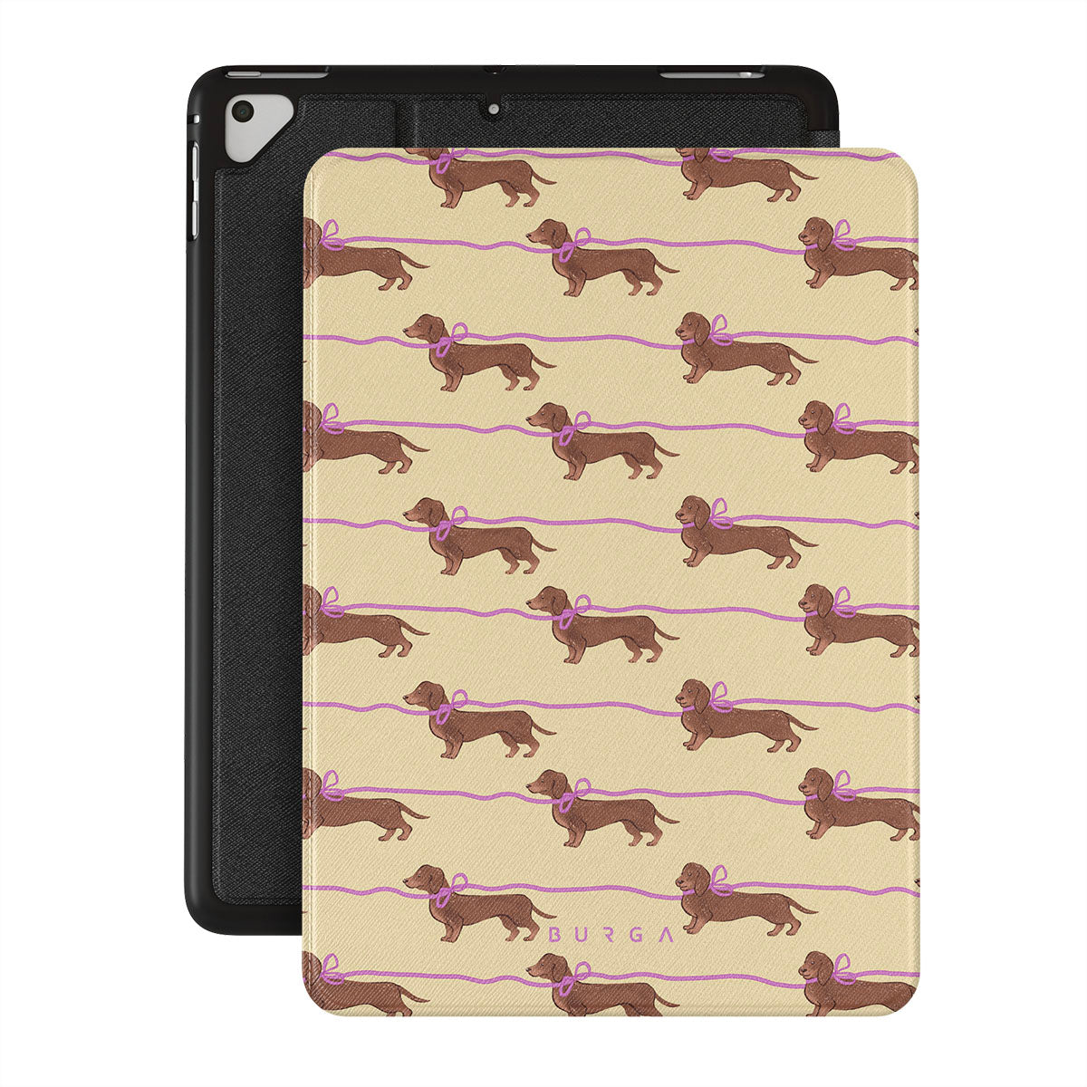 En este diseño: perros salchicha con lazos rosas, perros adorables