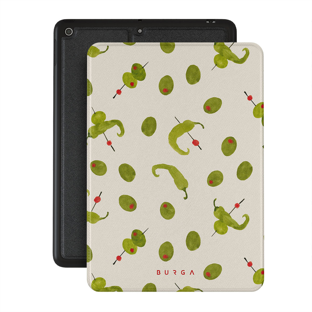En este diseño: Aceitunas, pimientos, patrones mediterráneos.