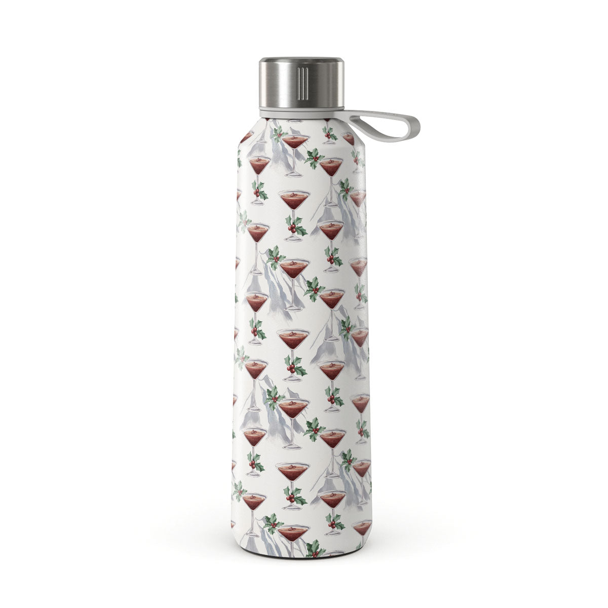 En este diseño: copas de cóctel, martinis, hojas de acebo
