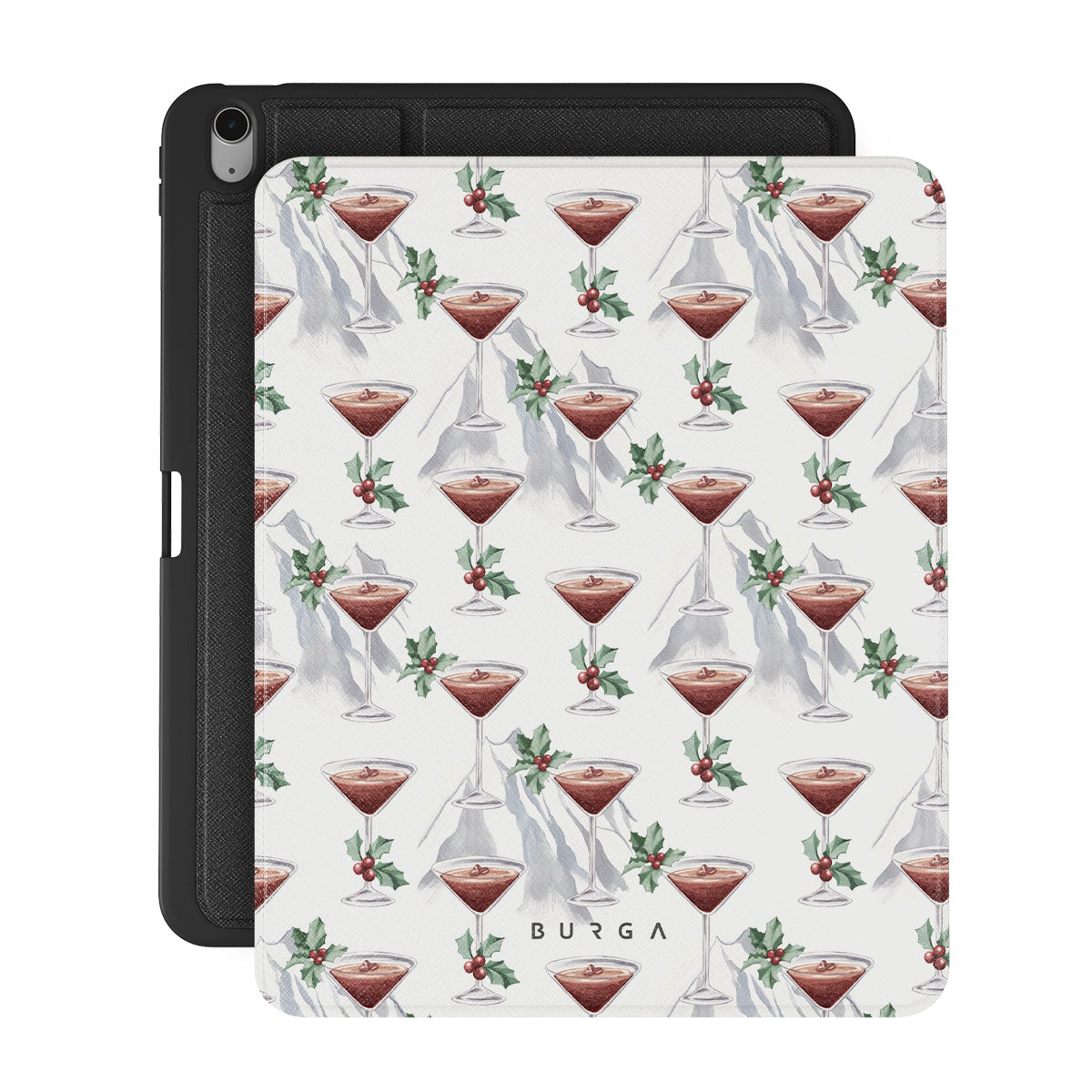 En este diseño: copas de cóctel, martinis, hojas de acebo