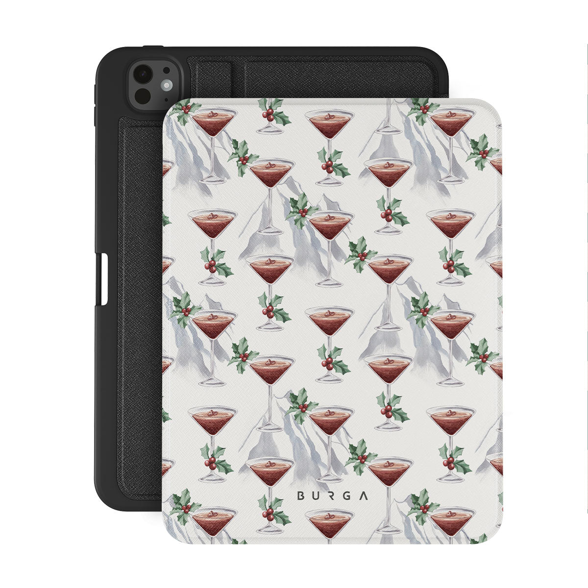 En este diseño: copas de cóctel, martinis, hojas de acebo