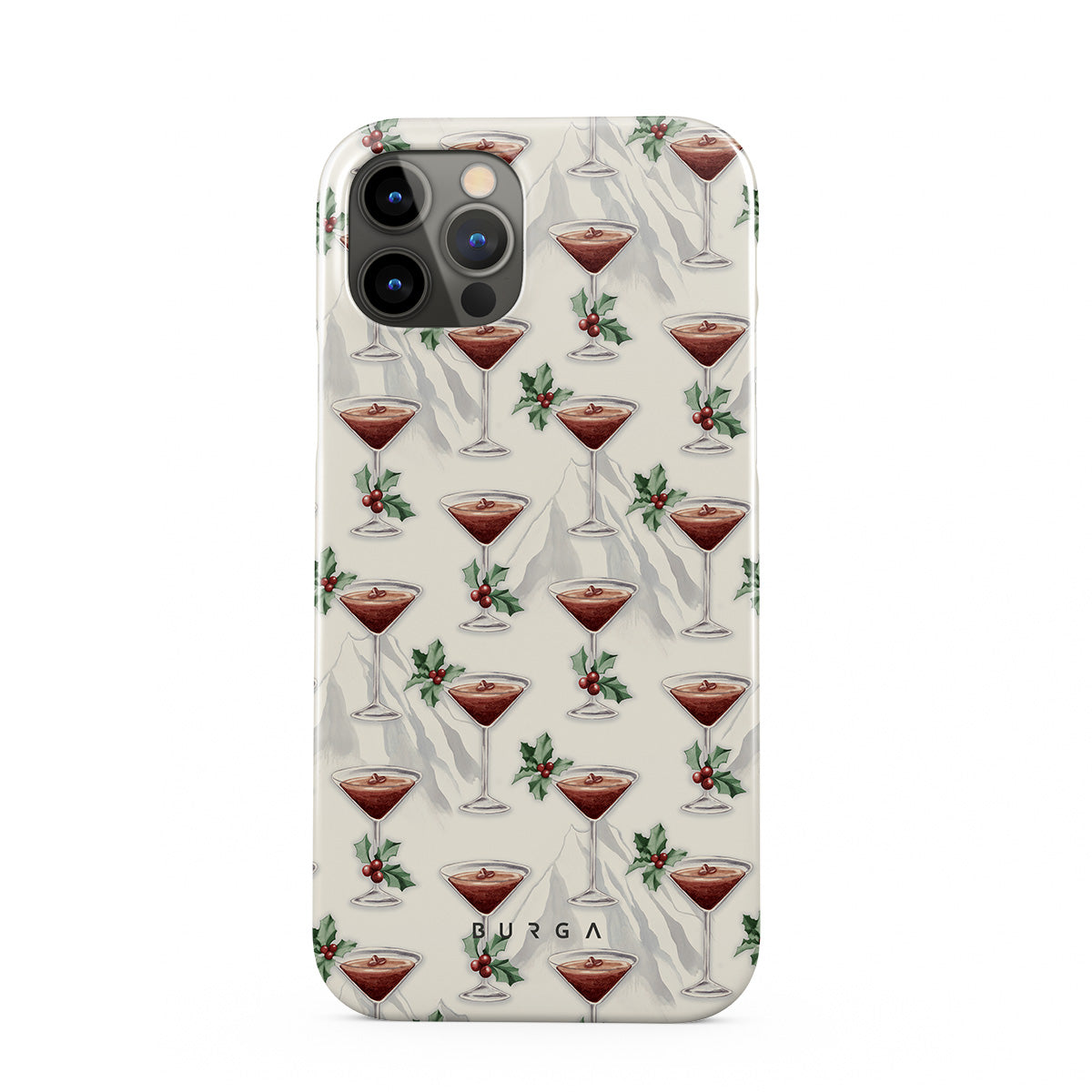 En este diseño: copas de cóctel, martinis, hojas de acebo