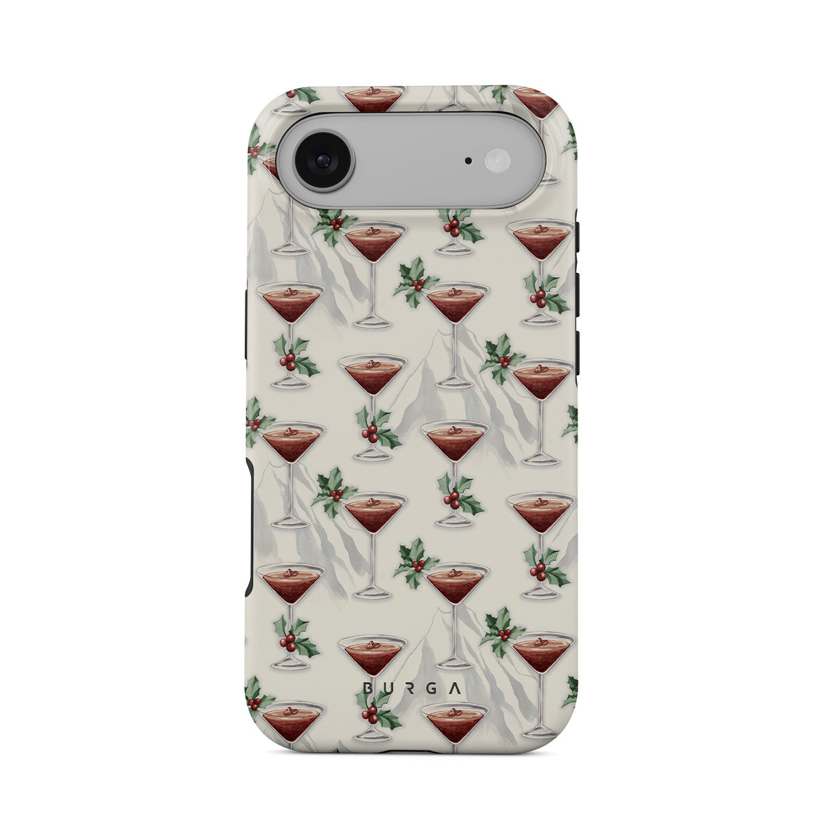En este diseño: copas de cóctel, martinis, hojas de acebo
