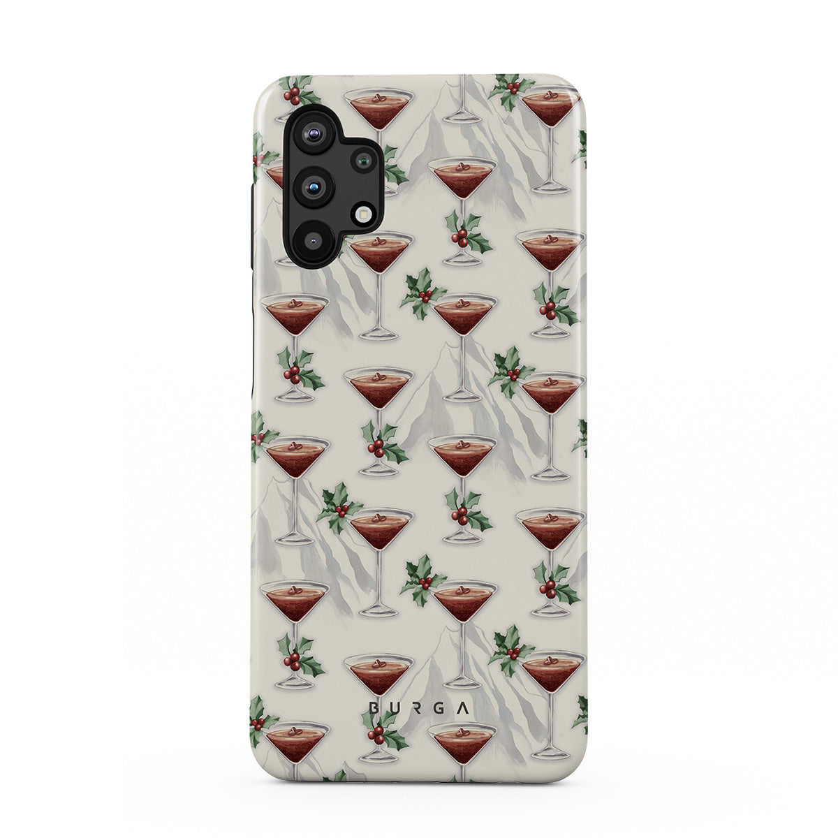 En este diseño: copas de cóctel, martinis, hojas de acebo