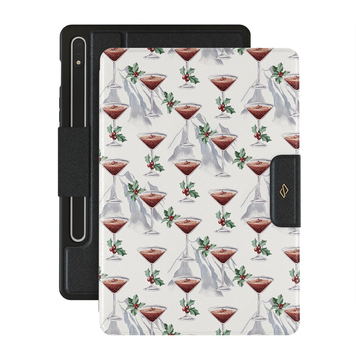 En este diseño: copas de cóctel, martinis, hojas de acebo
