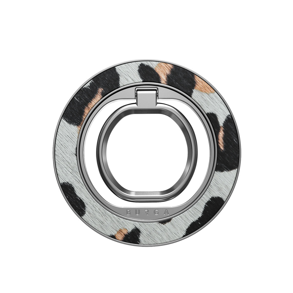 Nuestro anillo magnético se acopla al móvil con un clic muy agradable y sin necesidad de adhesivos. Úsalo para hacer scrolling con una sola mano, como soporte para ver contenido o, sencillamente, para presumir de funda BURGA a conjunto.