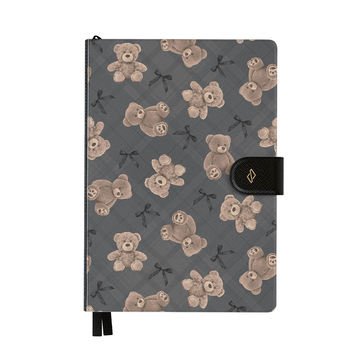 Esta agenda, revestida en una elegante piel saffiano vegana y asegurada con un bonito cierre magnético, está lista para resistir a esos derrames de café y pequeños accidentes del día a día.