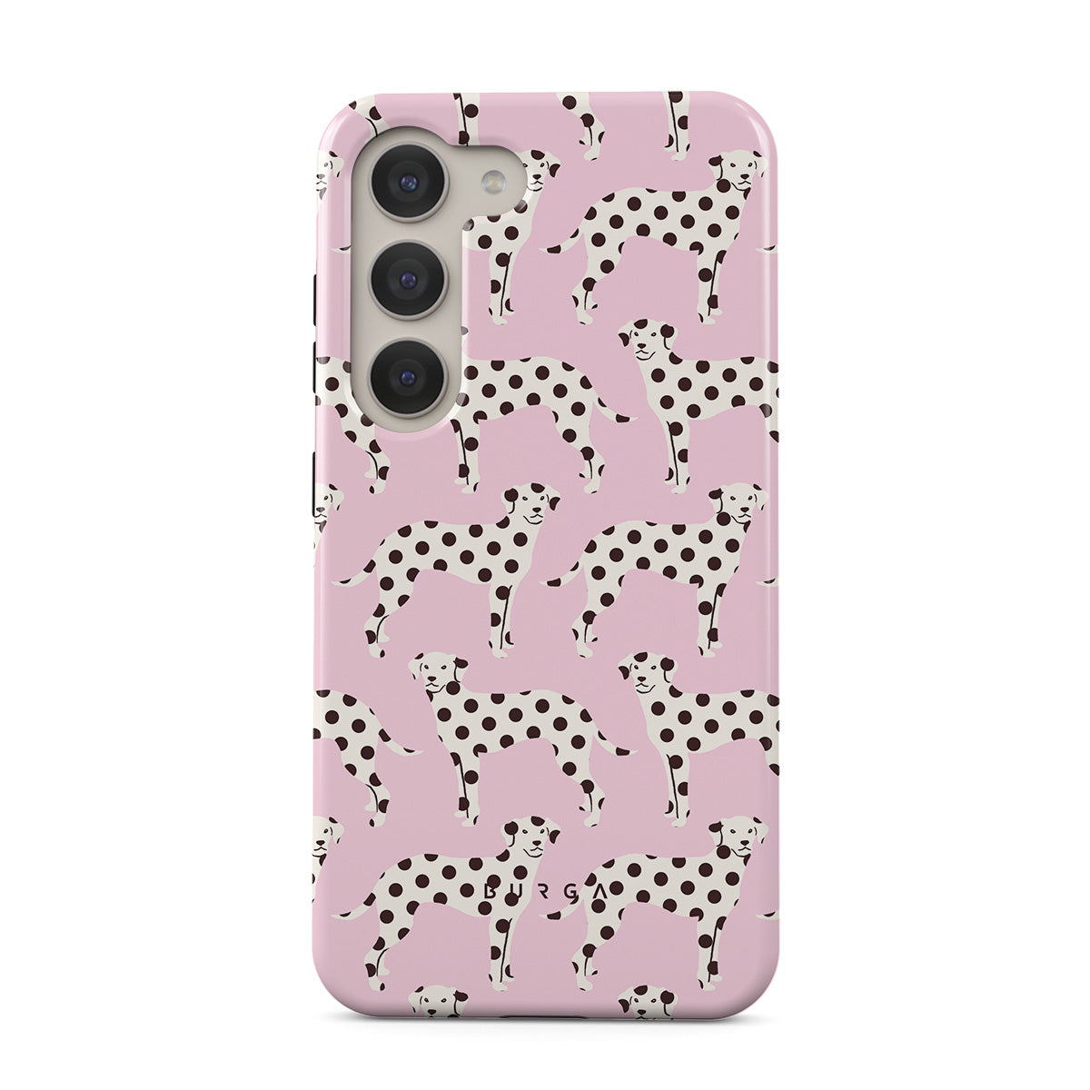 En este diseño: dálmatas, fondo rosa bebé, perros