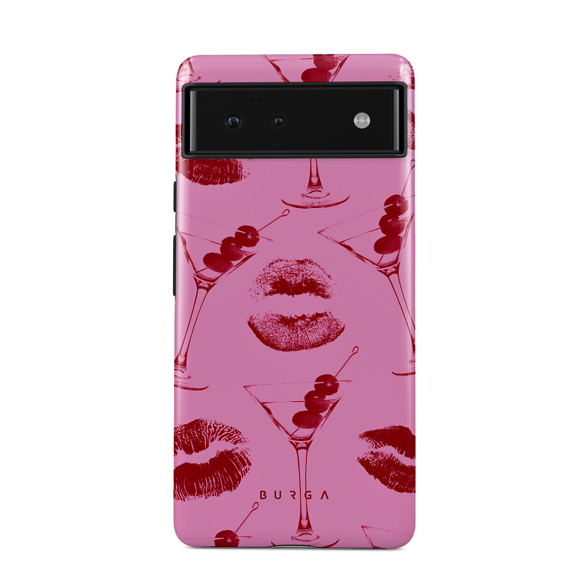Este diseño presenta: labios rojos, besos, copas de cóctel, martinis.