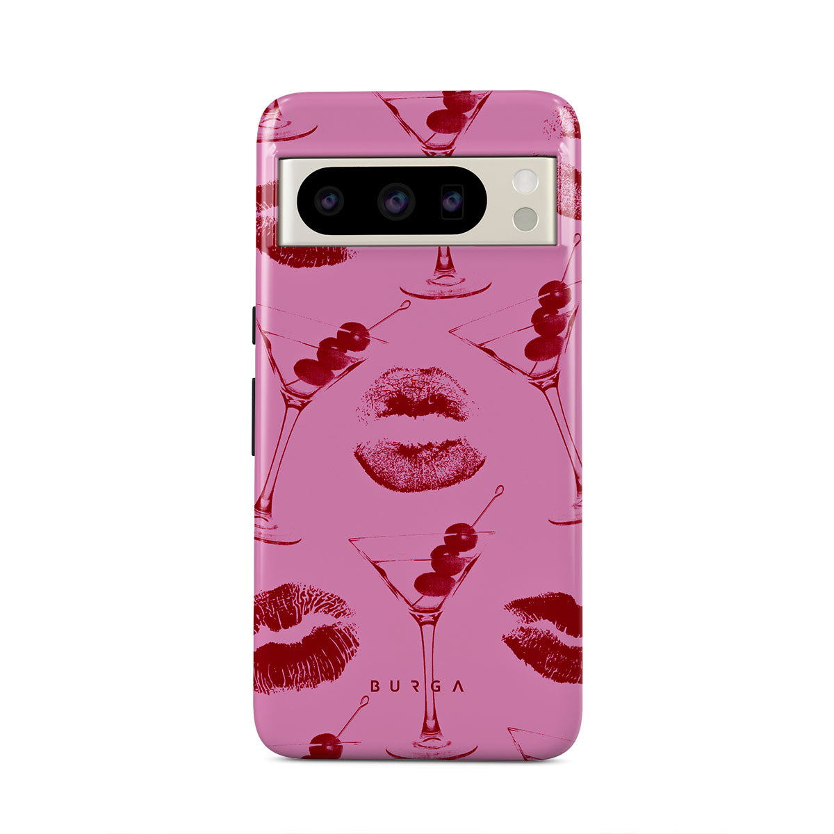 Este diseño presenta: labios rojos, besos, copas de cóctel, martinis.