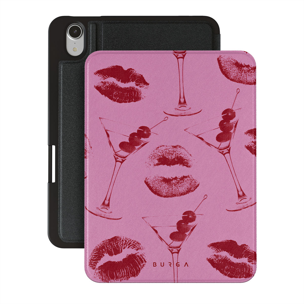 Este diseño presenta: labios rojos, besos, copas de cóctel, martinis.