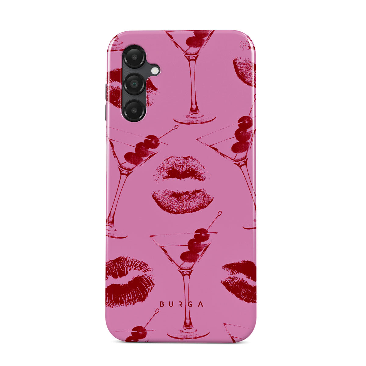 Este diseño presenta: labios rojos, besos, copas de cóctel, martinis.