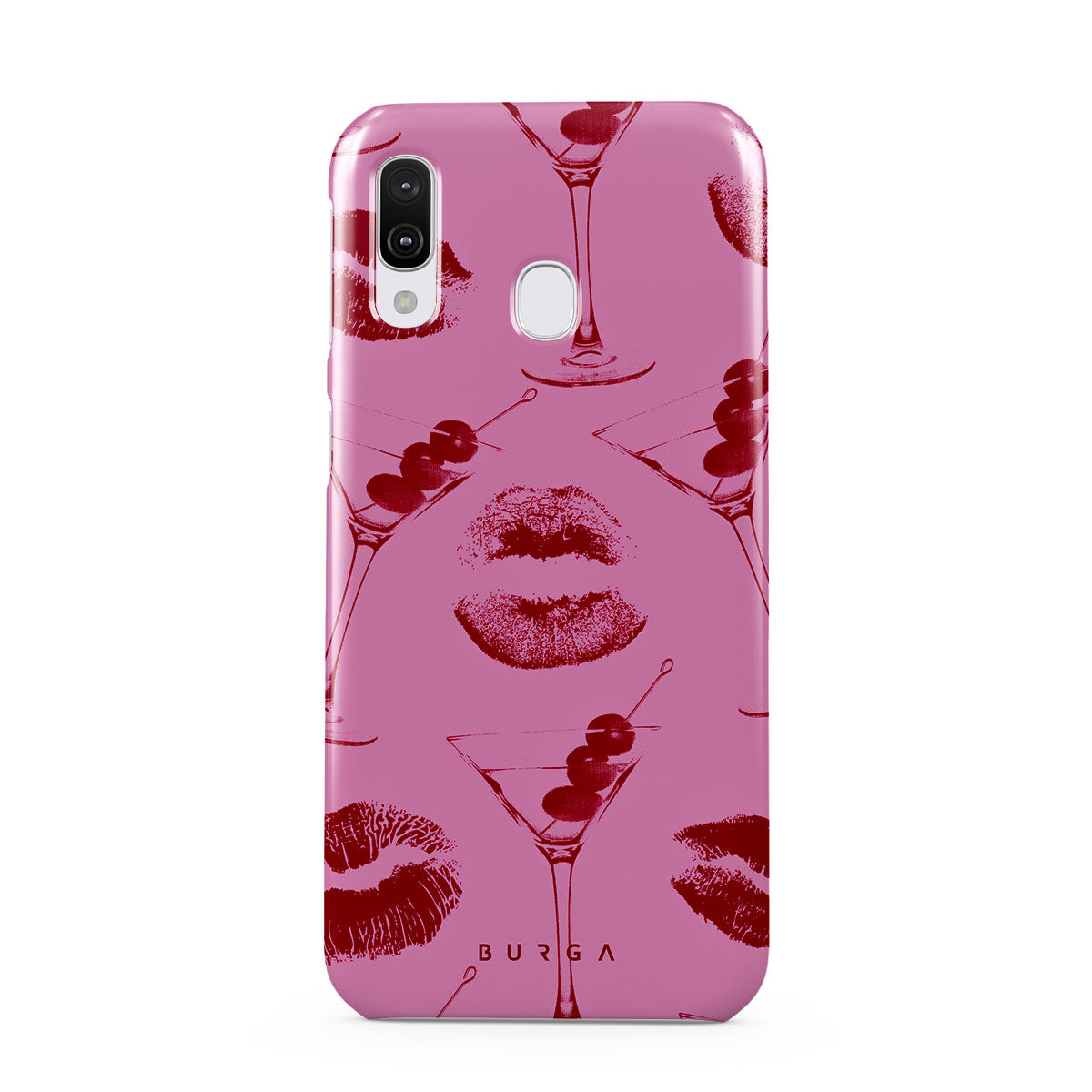 Este diseño presenta: labios rojos, besos, copas de cóctel, martinis.