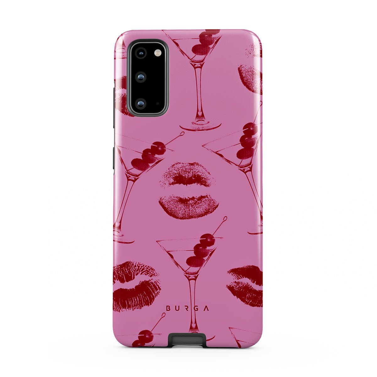Este diseño presenta: labios rojos, besos, copas de cóctel, martinis.