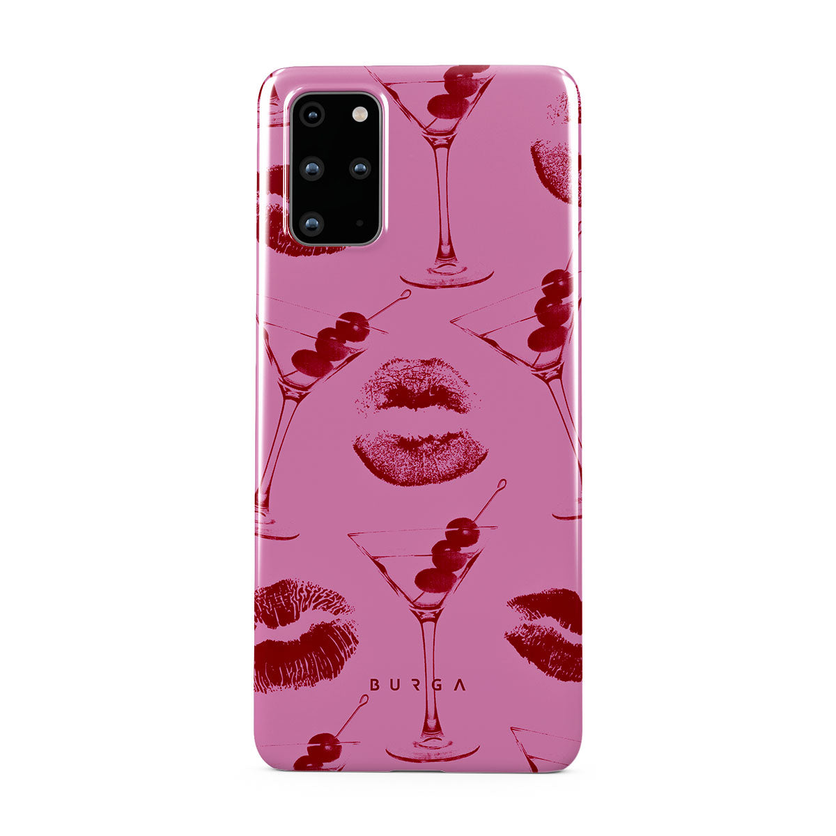 Este diseño presenta: labios rojos, besos, copas de cóctel, martinis.