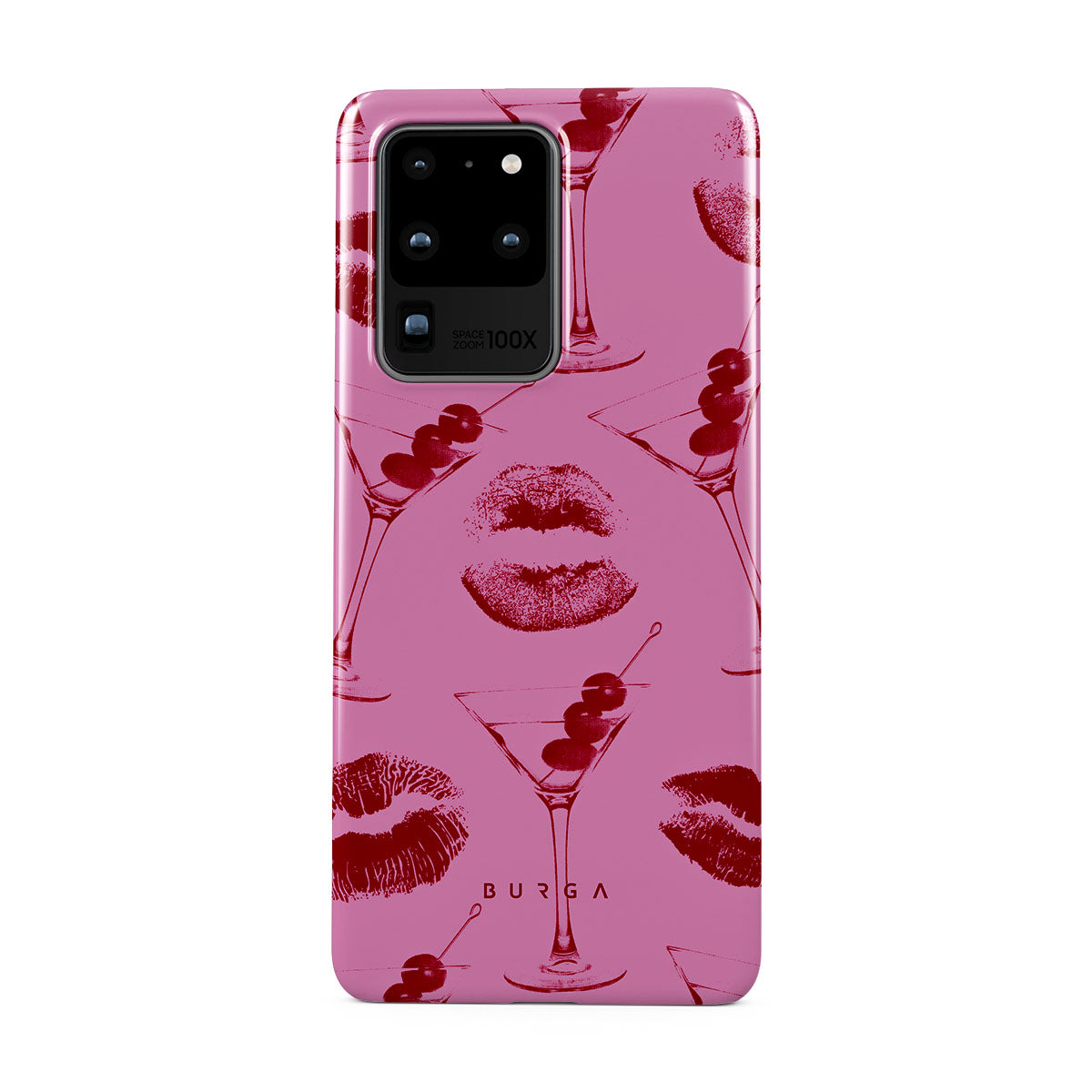 Este diseño presenta: labios rojos, besos, copas de cóctel, martinis.