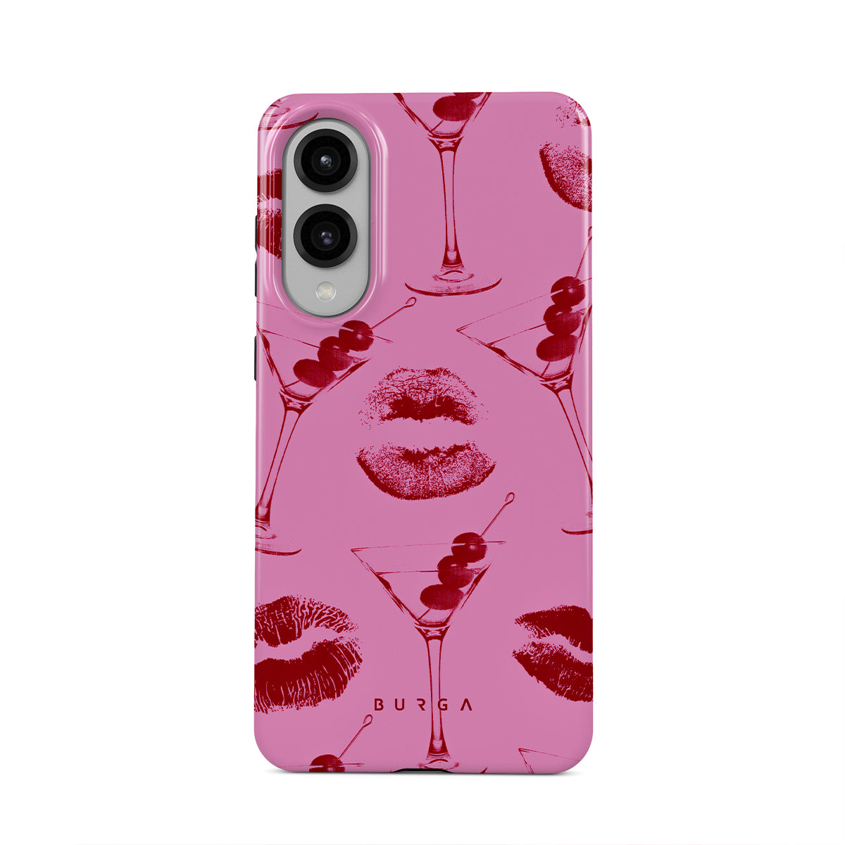 Este diseño presenta: labios rojos, besos, copas de cóctel, martinis.