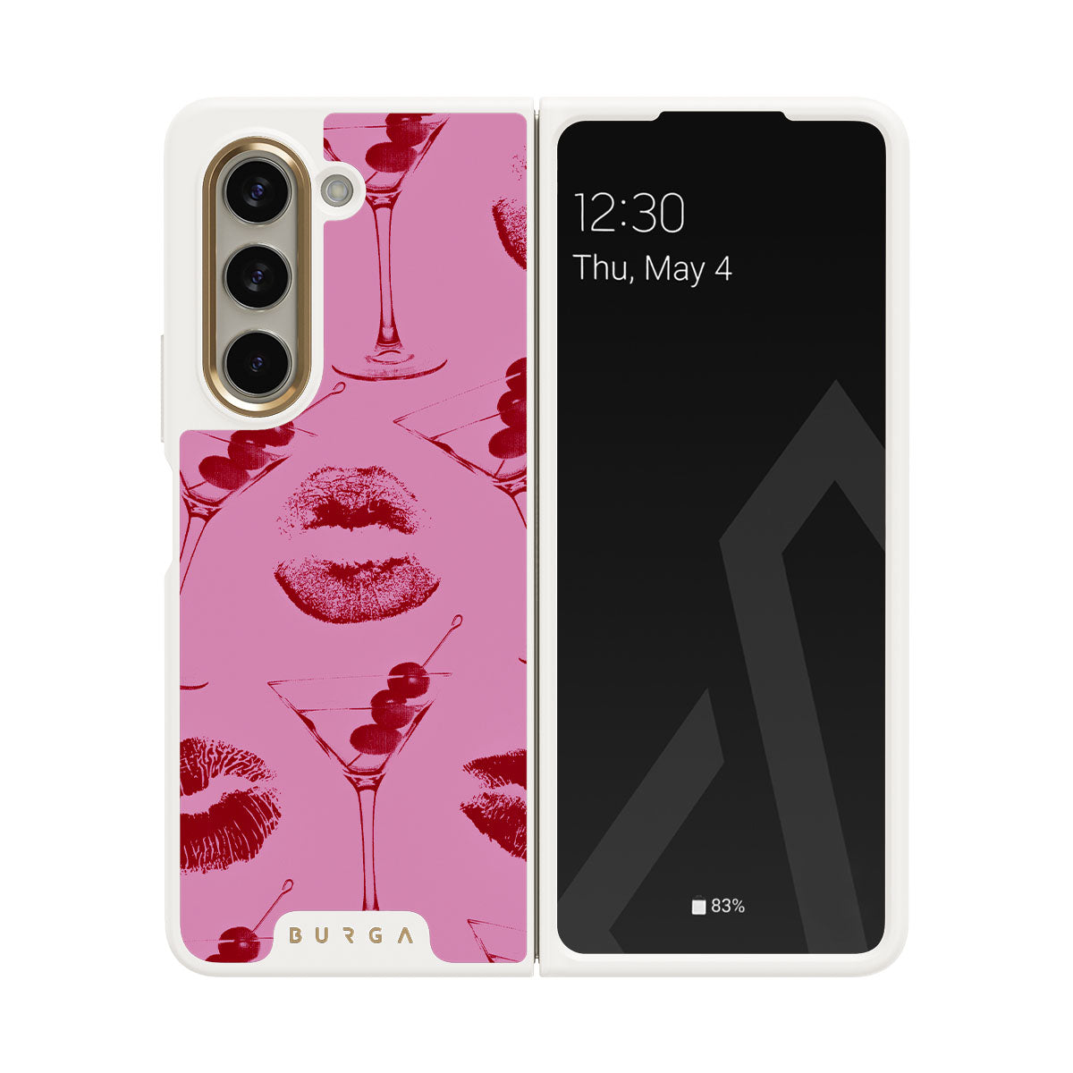 Este diseño presenta: labios rojos, besos, copas de cóctel, martinis.