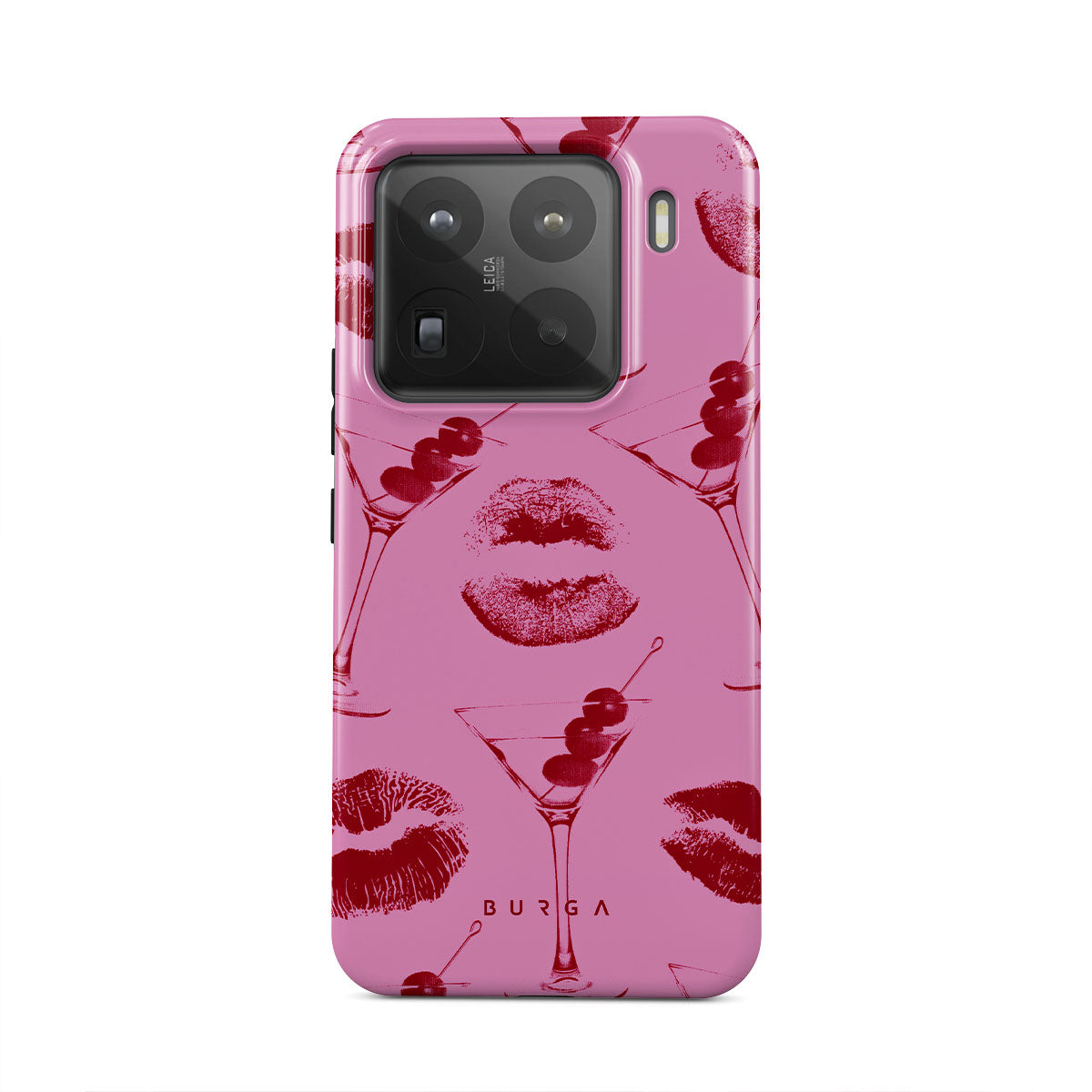 Este diseño presenta: labios rojos, besos, copas de cóctel, martinis.