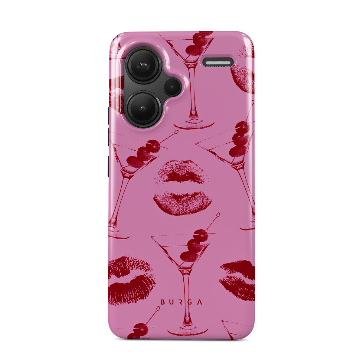 Este diseño presenta: labios rojos, besos, copas de cóctel, martinis.