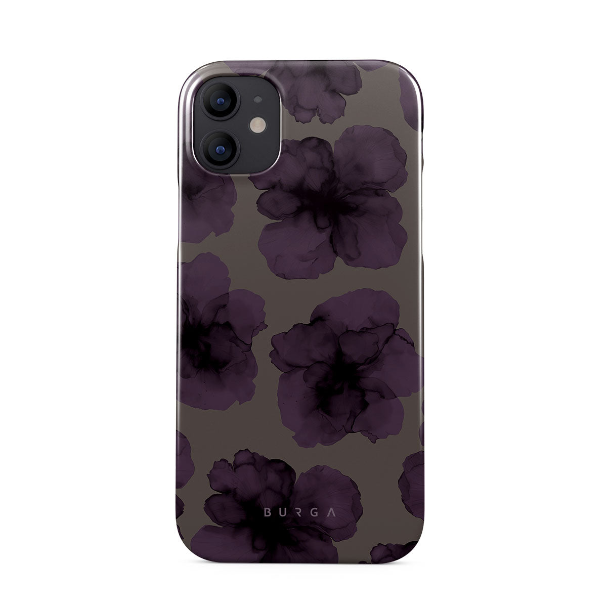 En este diseño: flores oscuras, flores moradas, pétalos violetas.