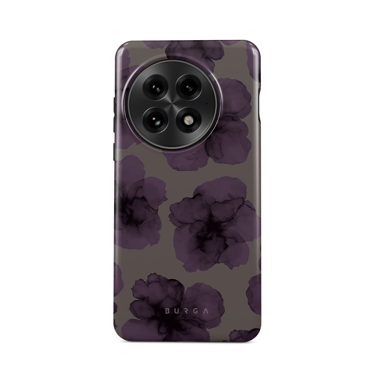 En este diseño: flores oscuras, flores moradas, pétalos violetas.