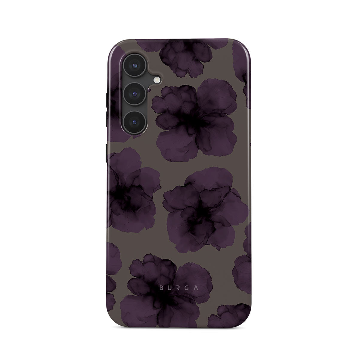 En este diseño: flores oscuras, flores moradas, pétalos violetas.