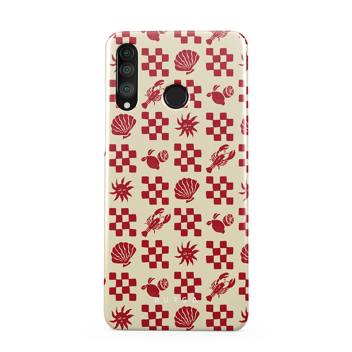 En este diseño: Patrones a cuadros rojos, conchas, langosta, motivos italianos.