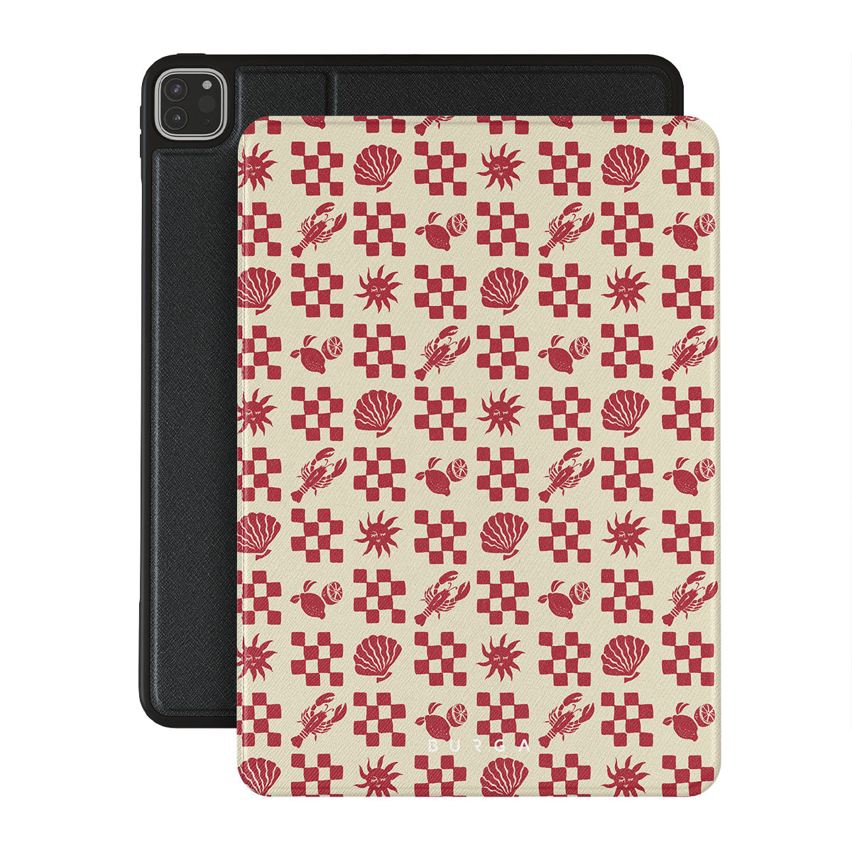 En este diseño: Patrones a cuadros rojos, conchas, langosta, motivos italianos.