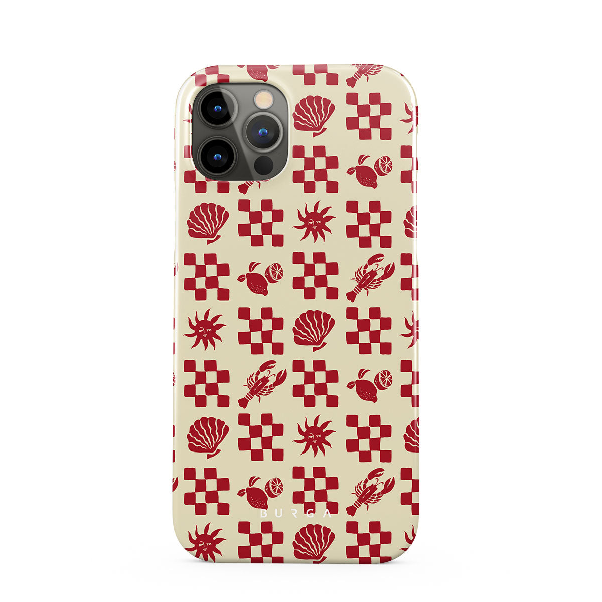 En este diseño: Patrones a cuadros rojos, conchas, langosta, motivos italianos.