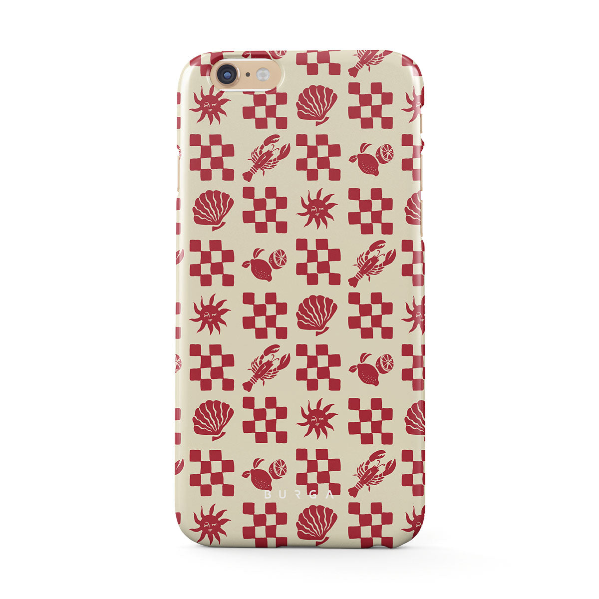 En este diseño: Patrones a cuadros rojos, conchas, langosta, motivos italianos.