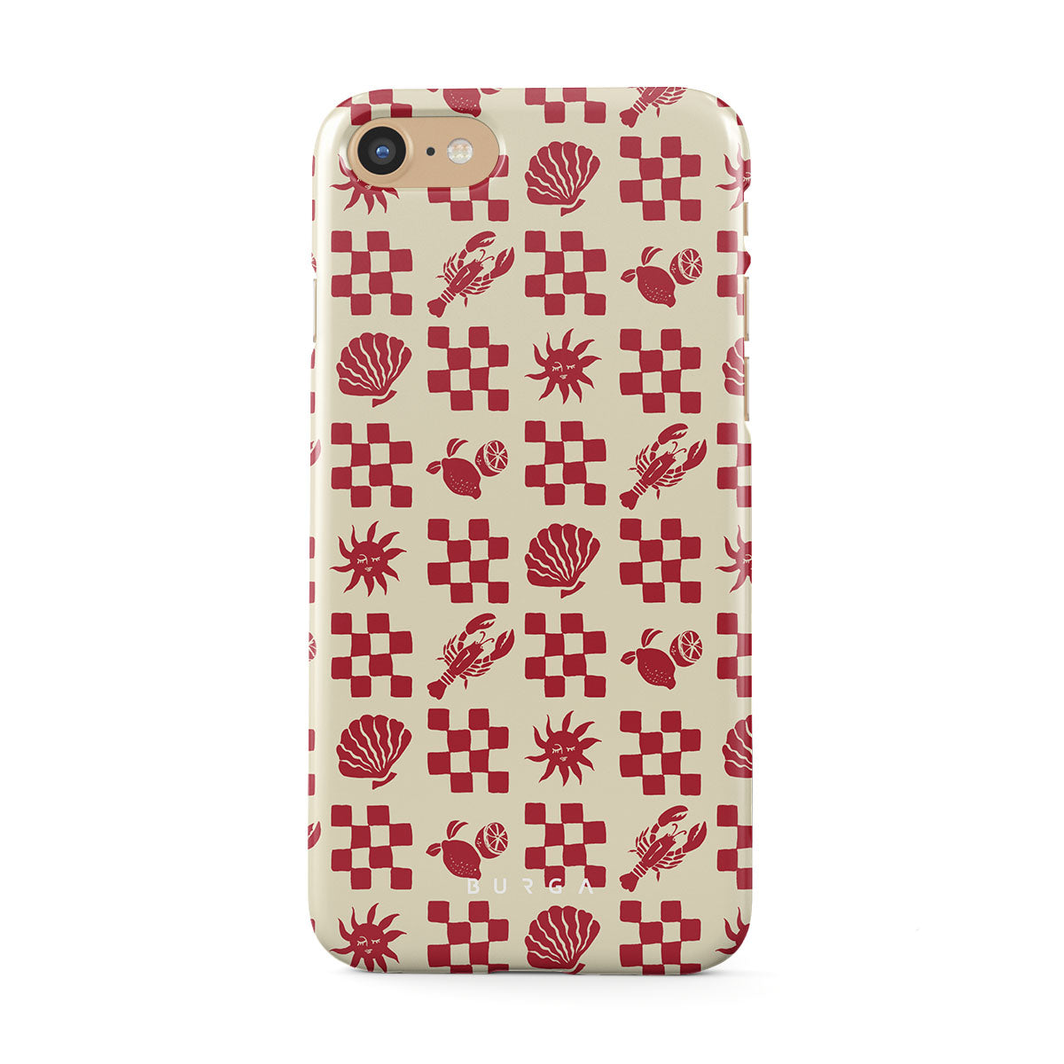 En este diseño: Patrones a cuadros rojos, conchas, langosta, motivos italianos.