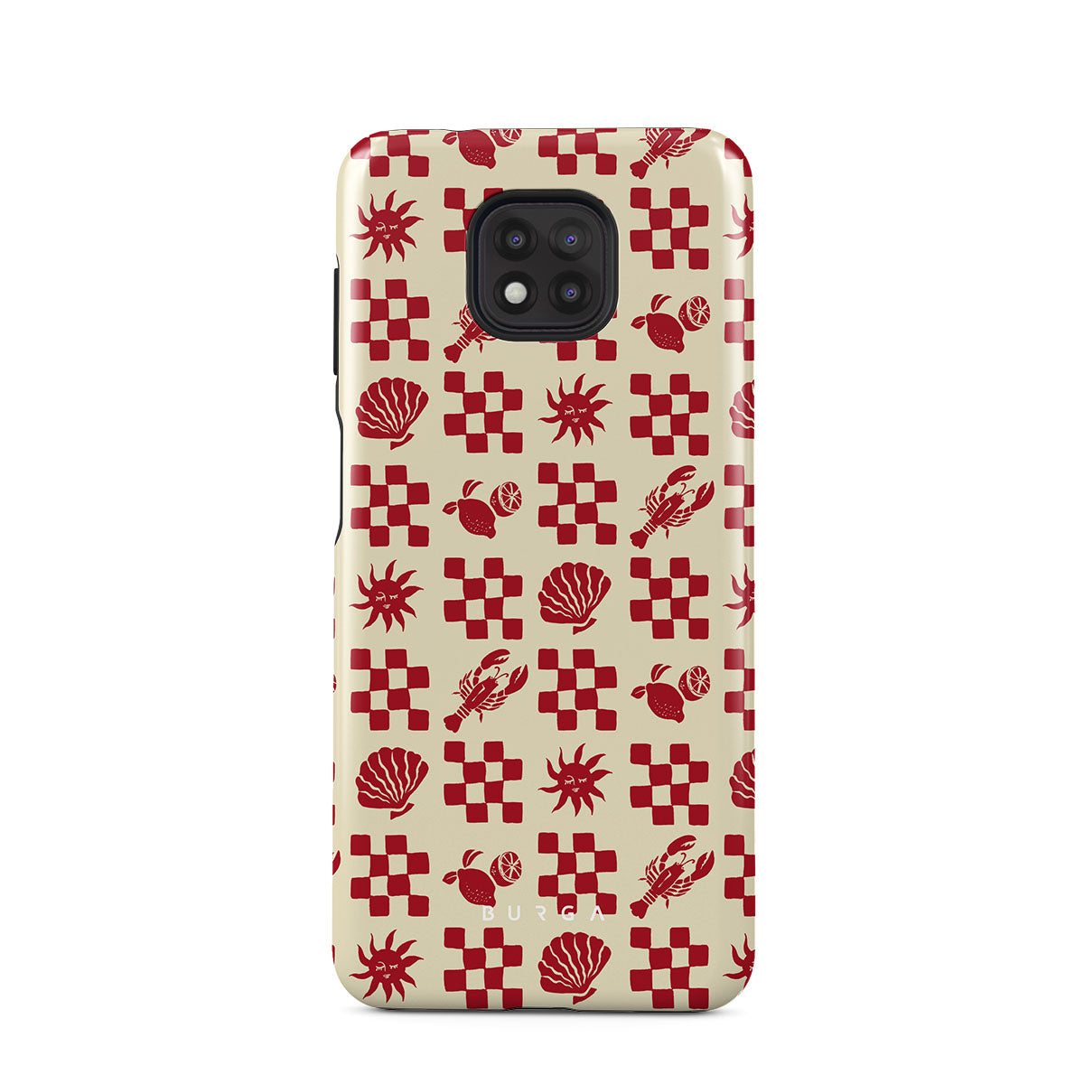 En este diseño: Patrones a cuadros rojos, conchas, langosta, motivos italianos.