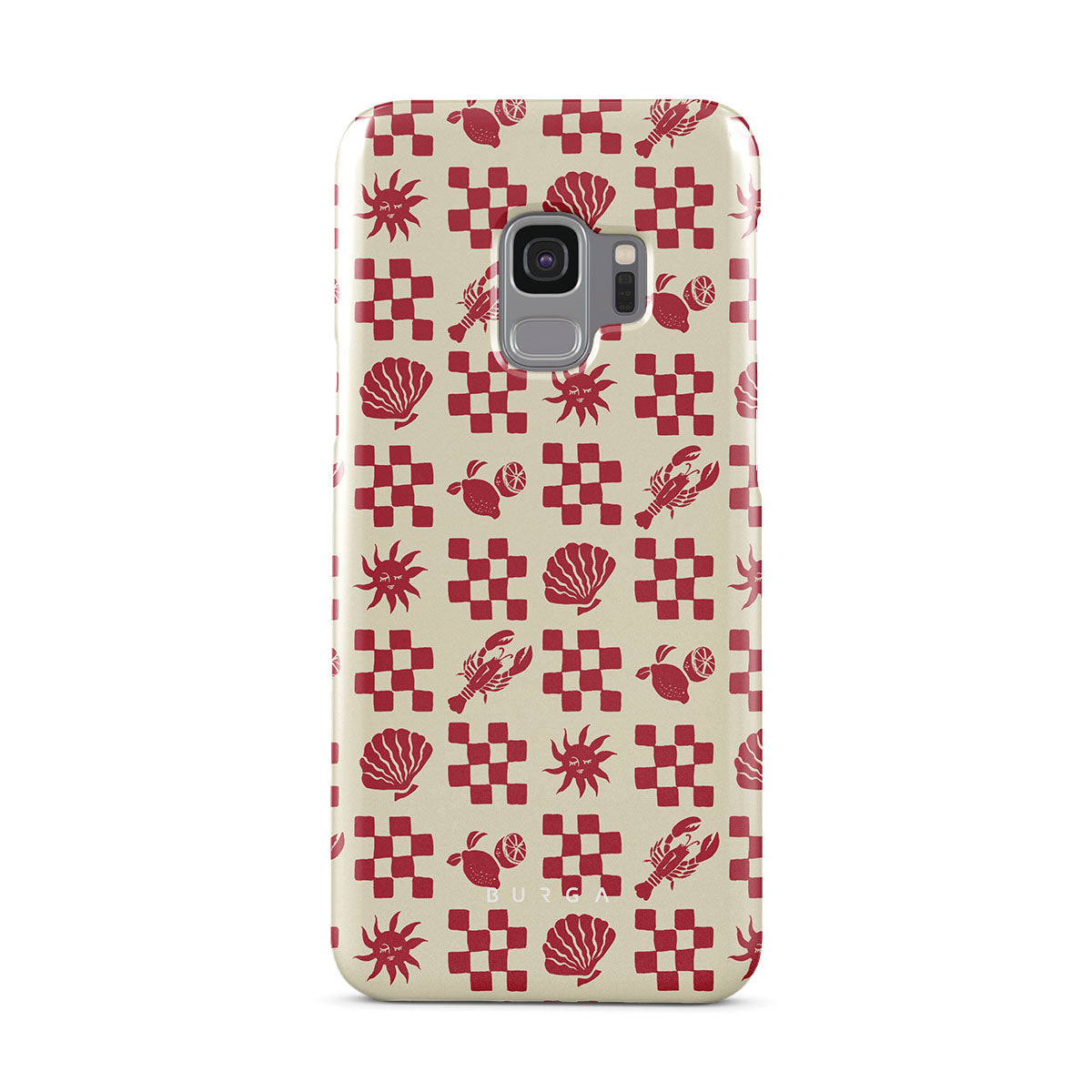 En este diseño: Patrones a cuadros rojos, conchas, langosta, motivos italianos.