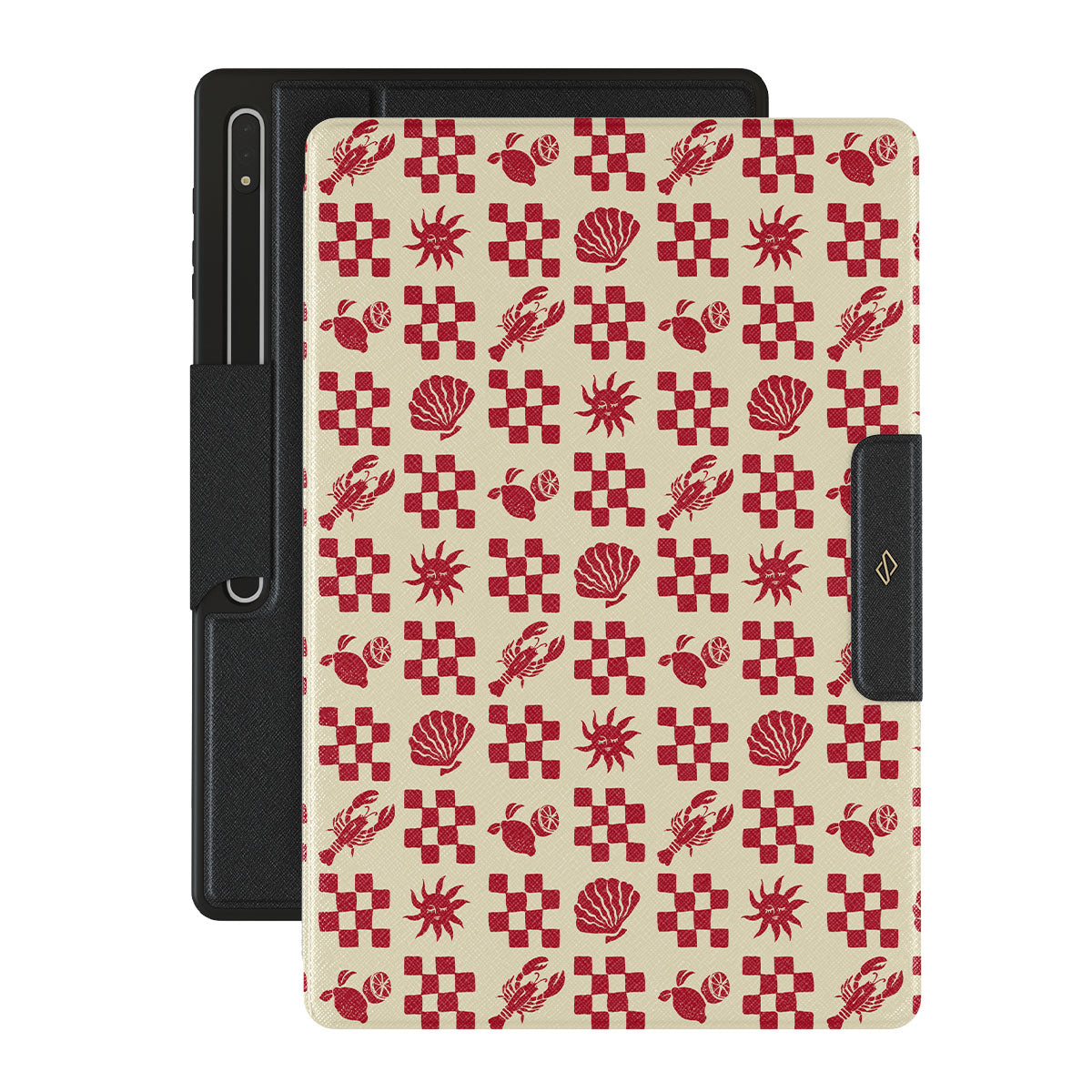 En este diseño: Patrones a cuadros rojos, conchas, langosta, motivos italianos.
