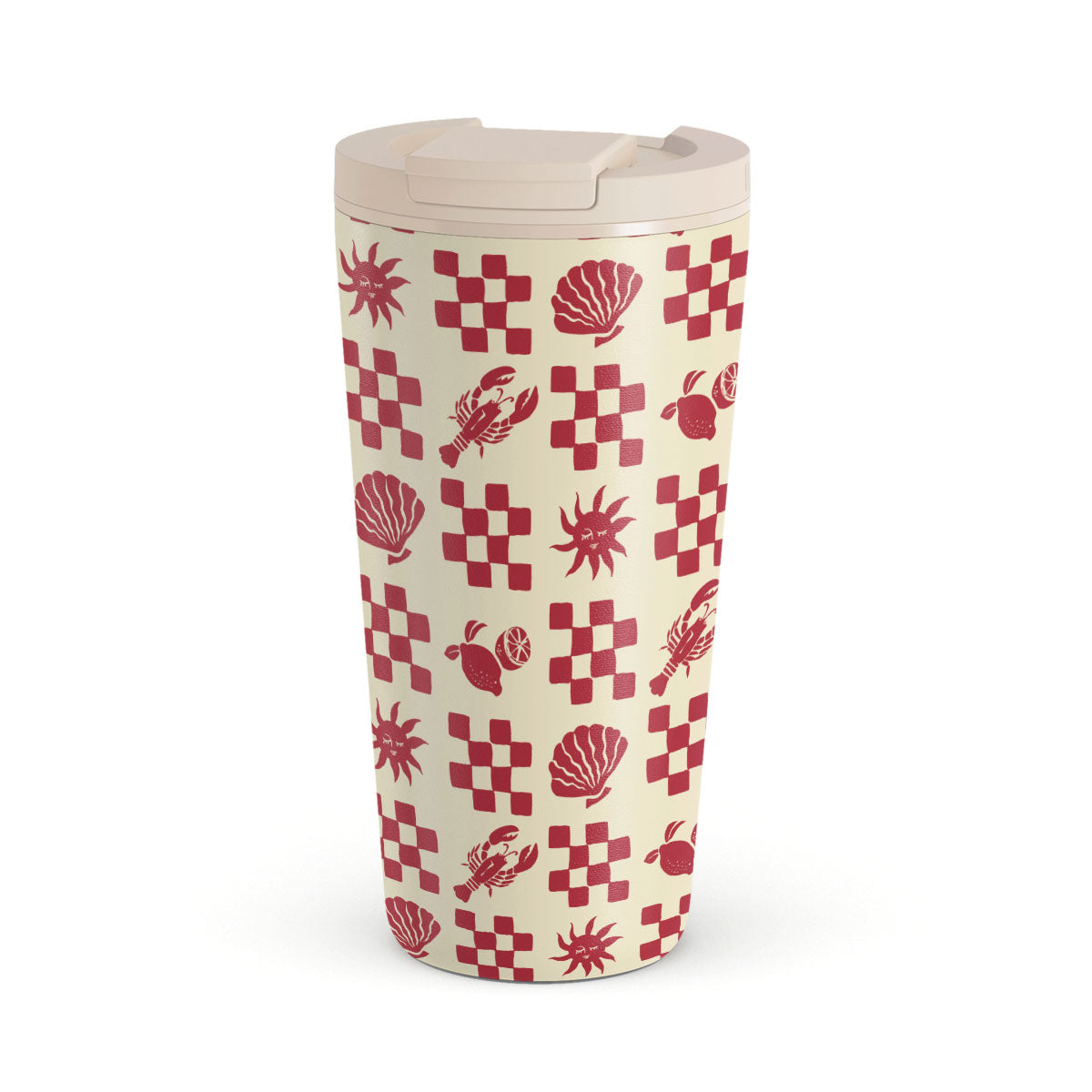 En este diseño: Patrones a cuadros rojos, conchas, langosta, motivos italianos.