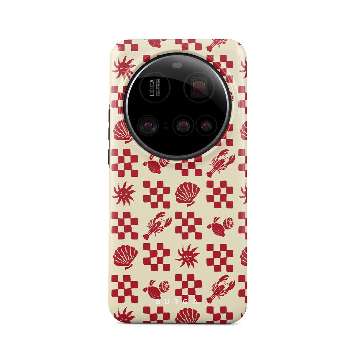 En este diseño: Patrones a cuadros rojos, conchas, langosta, motivos italianos.