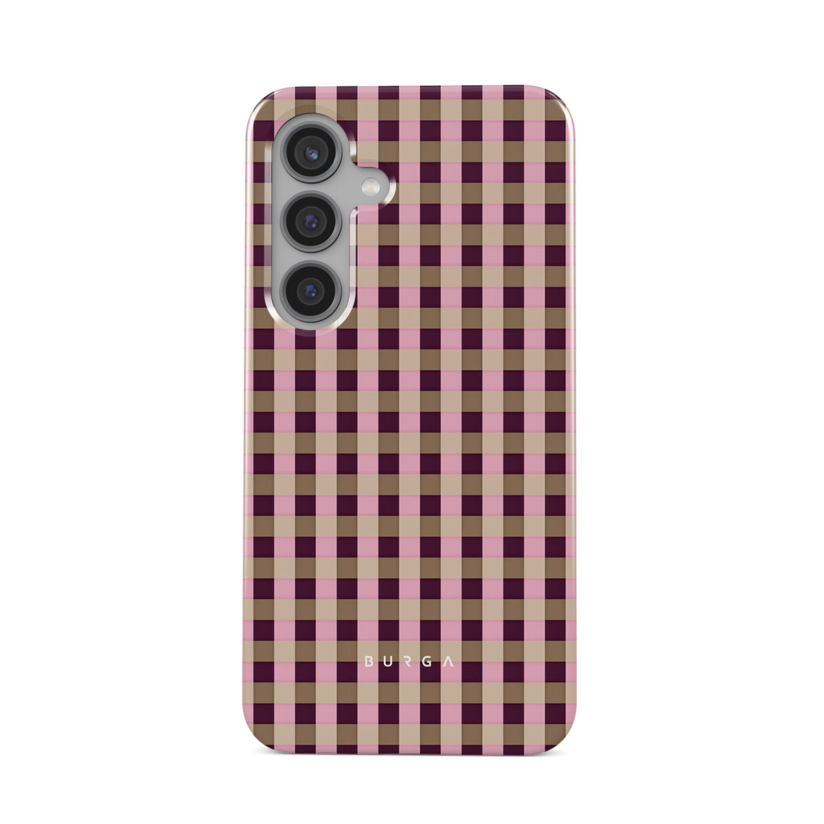 En este diseño: patrón de cuadros, rosa, burdeos, estilo moderno