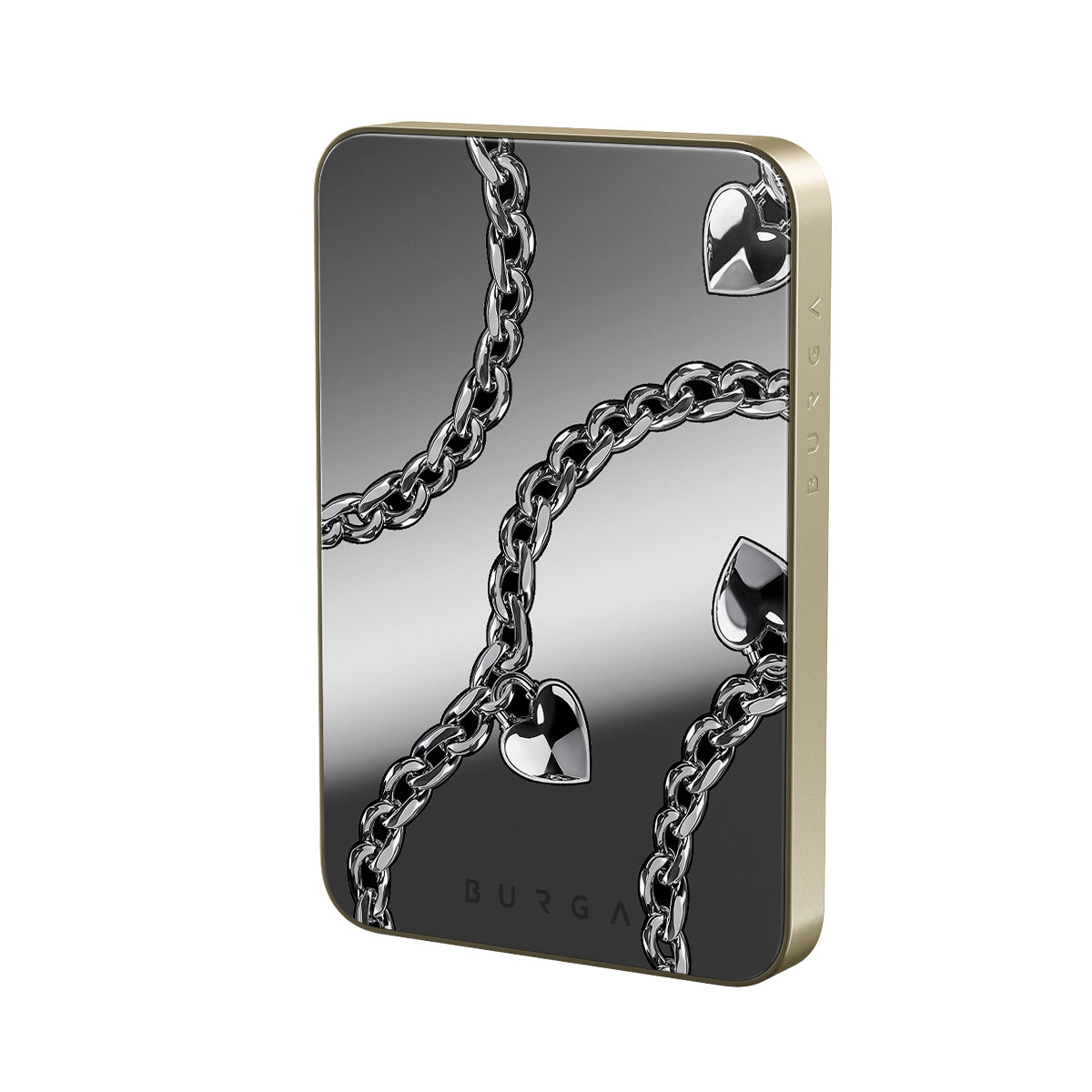 En este diseño: cadenas, corazones, plata, detalles metálicos, espejo
