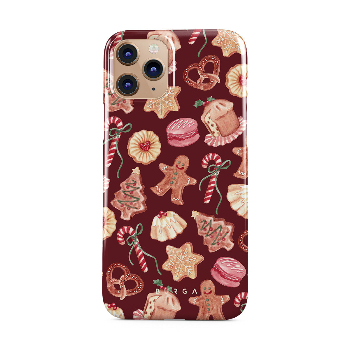 En este diseño: galletas de Navidad, hombres de jengibre, bastones de caramelo, caramelos de menta, dulces festivos, fondo rojo burdeos