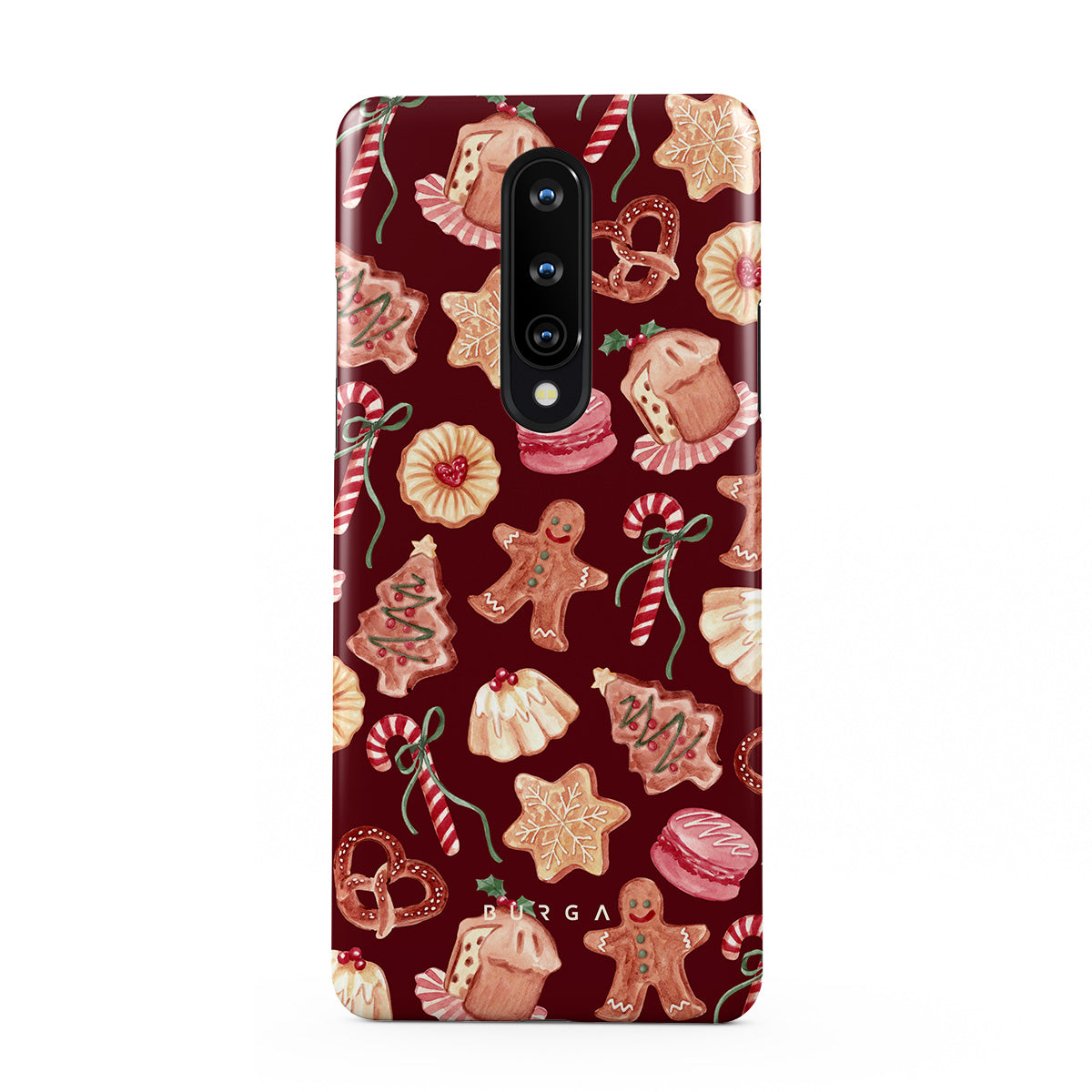 En este diseño: galletas de Navidad, hombres de jengibre, bastones de caramelo, caramelos de menta, dulces festivos, fondo rojo burdeos