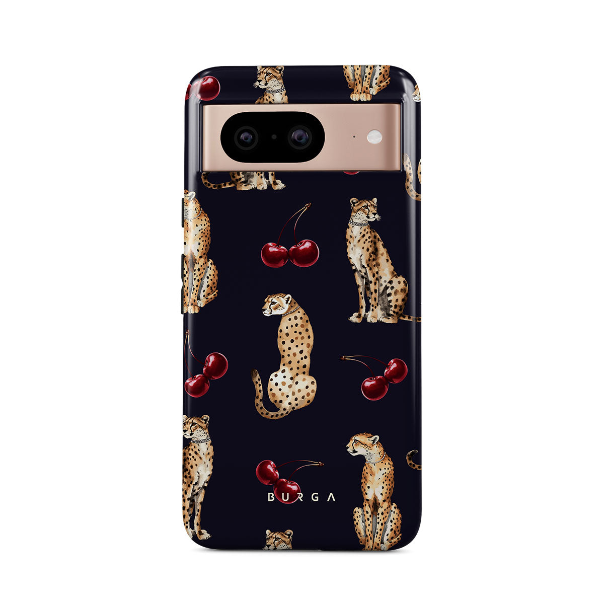 Este diseño presenta: estampado de leopardo, leopardos, cerezas.