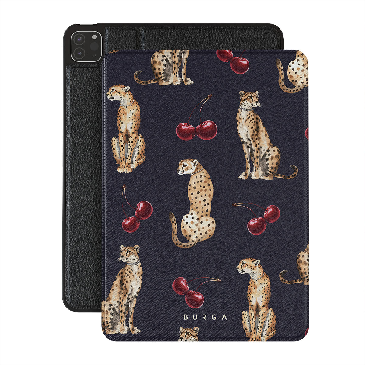 Este diseño presenta: estampado de leopardo, leopardos, cerezas.