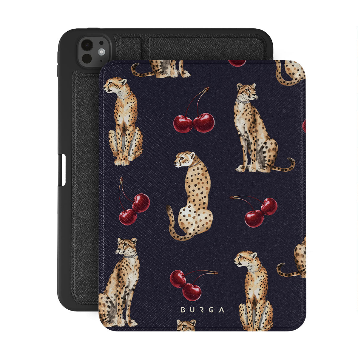 Este diseño presenta: estampado de leopardo, leopardos, cerezas.
