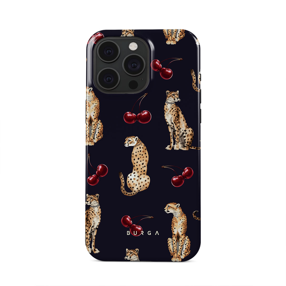 Este diseño presenta: estampado de leopardo, leopardos, cerezas.