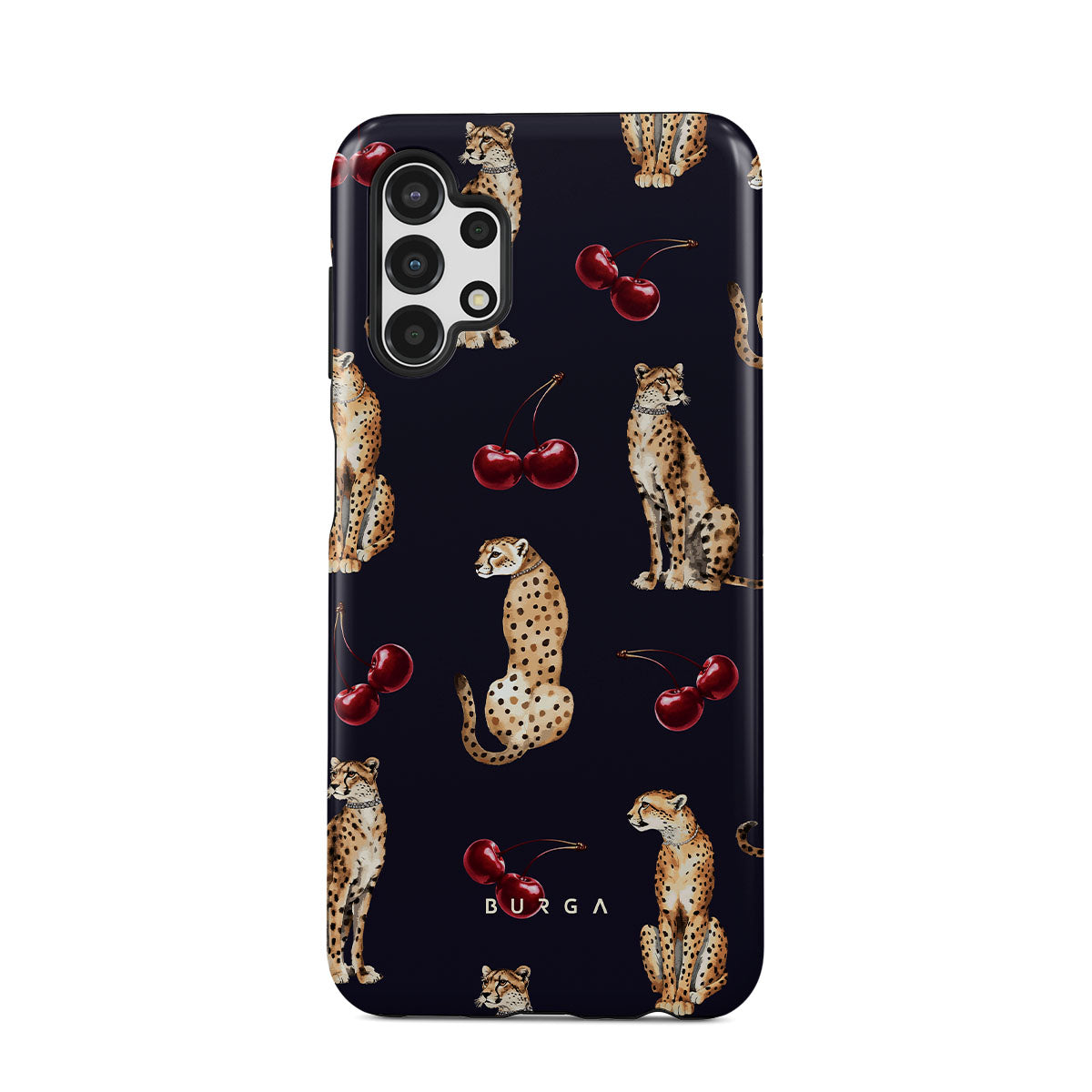 Este diseño presenta: estampado de leopardo, leopardos, cerezas.