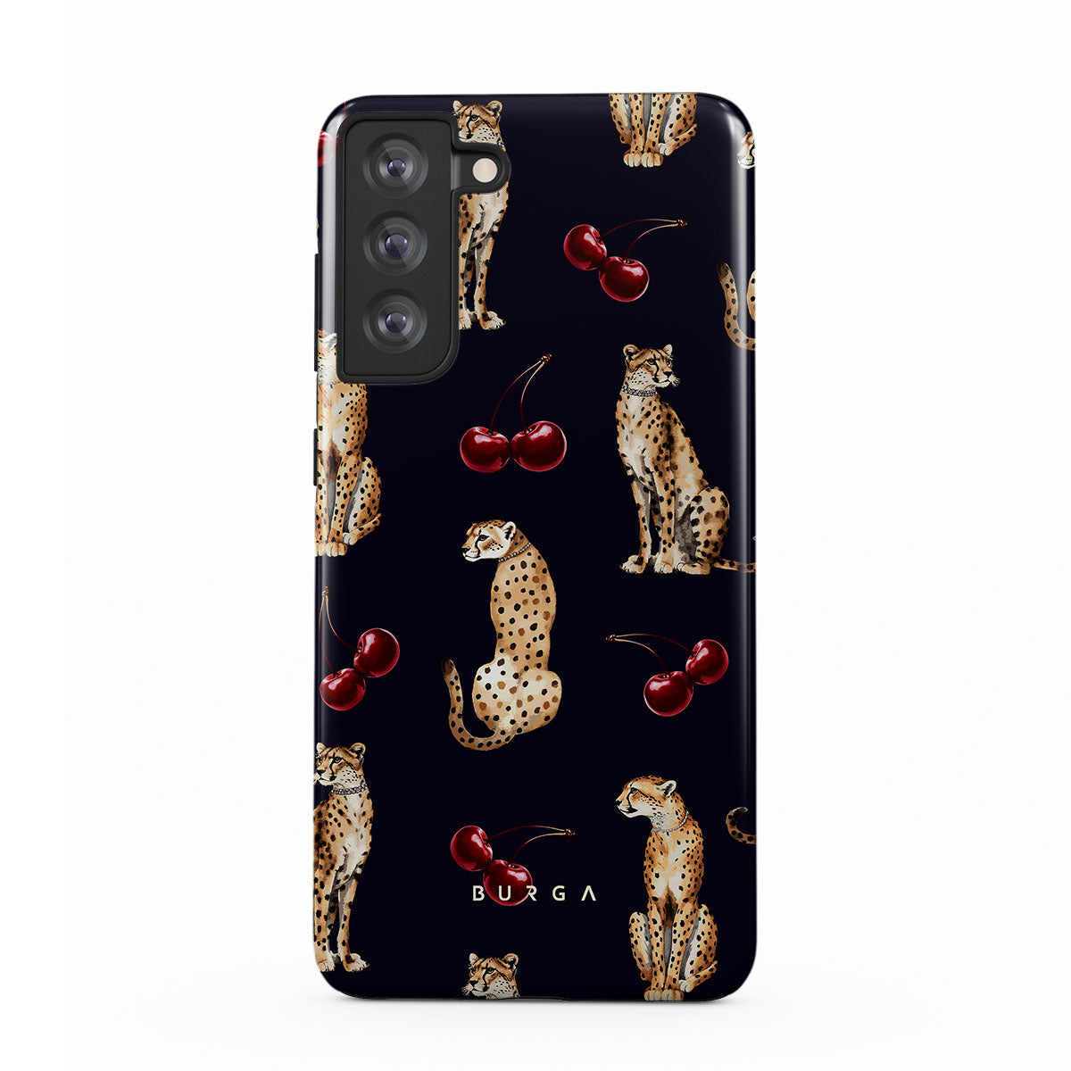 Este diseño presenta: estampado de leopardo, leopardos, cerezas.