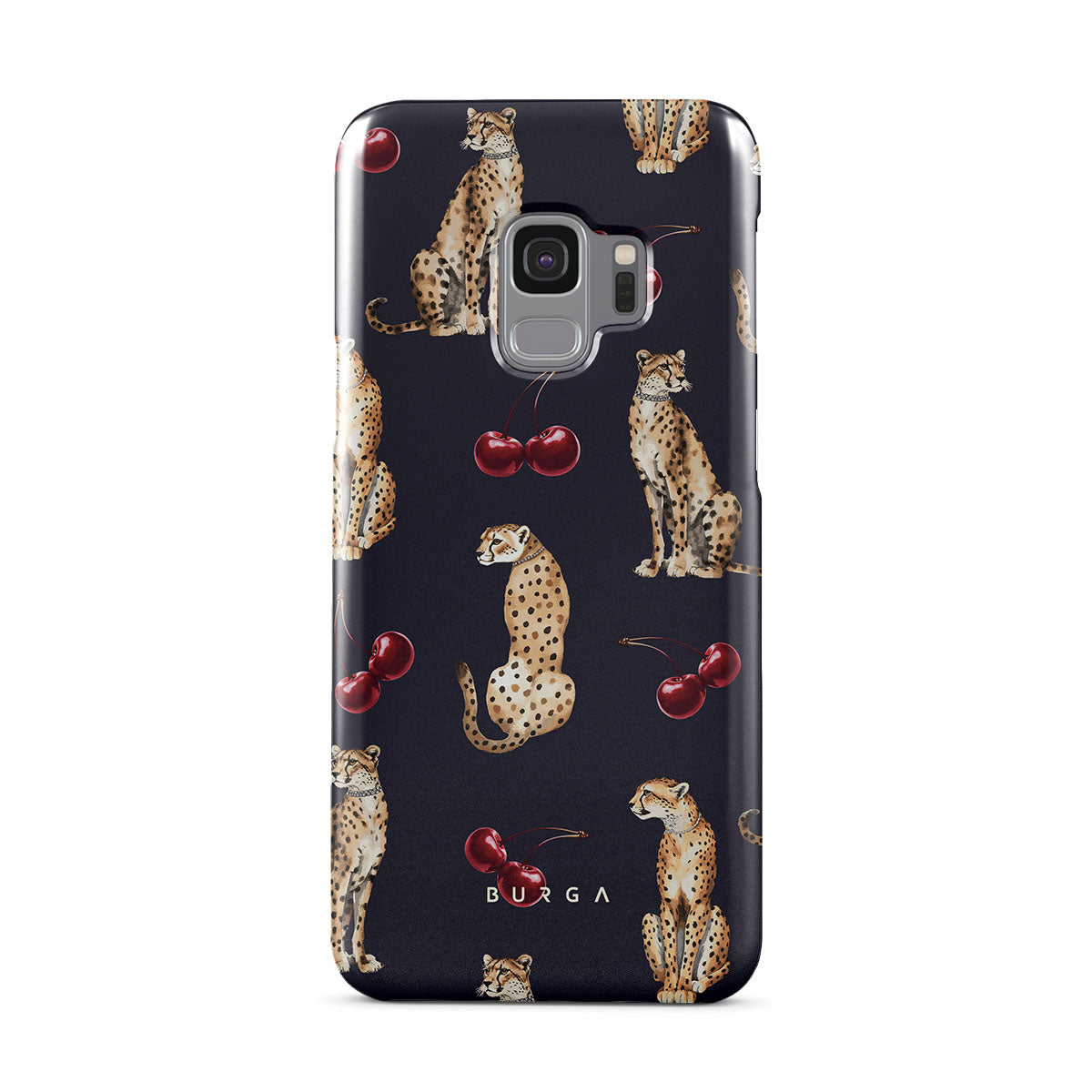 Este diseño presenta: estampado de leopardo, leopardos, cerezas.